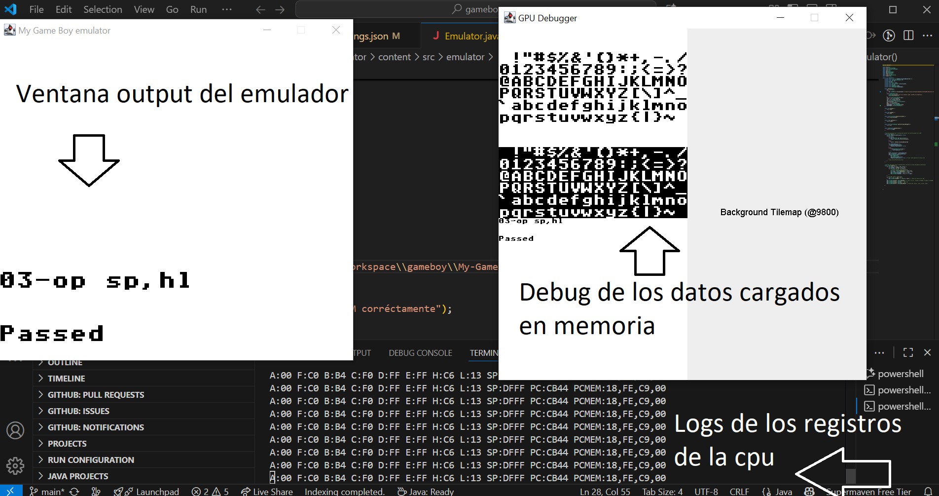 Emulador de GameBoy en Java. Trabajo en progreso — puede cargar pantallas iniciales y ROMs en memoria, pero todavía hay un error de temporizador.